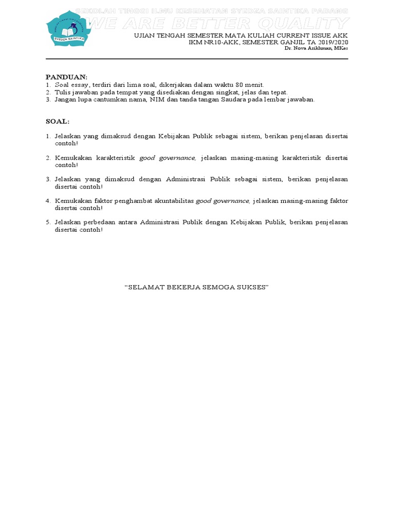 Maybe you would like to learn more about one of these? Soal essay dan jawaban good governance. Check spelling or type a new query. We did not find results for: