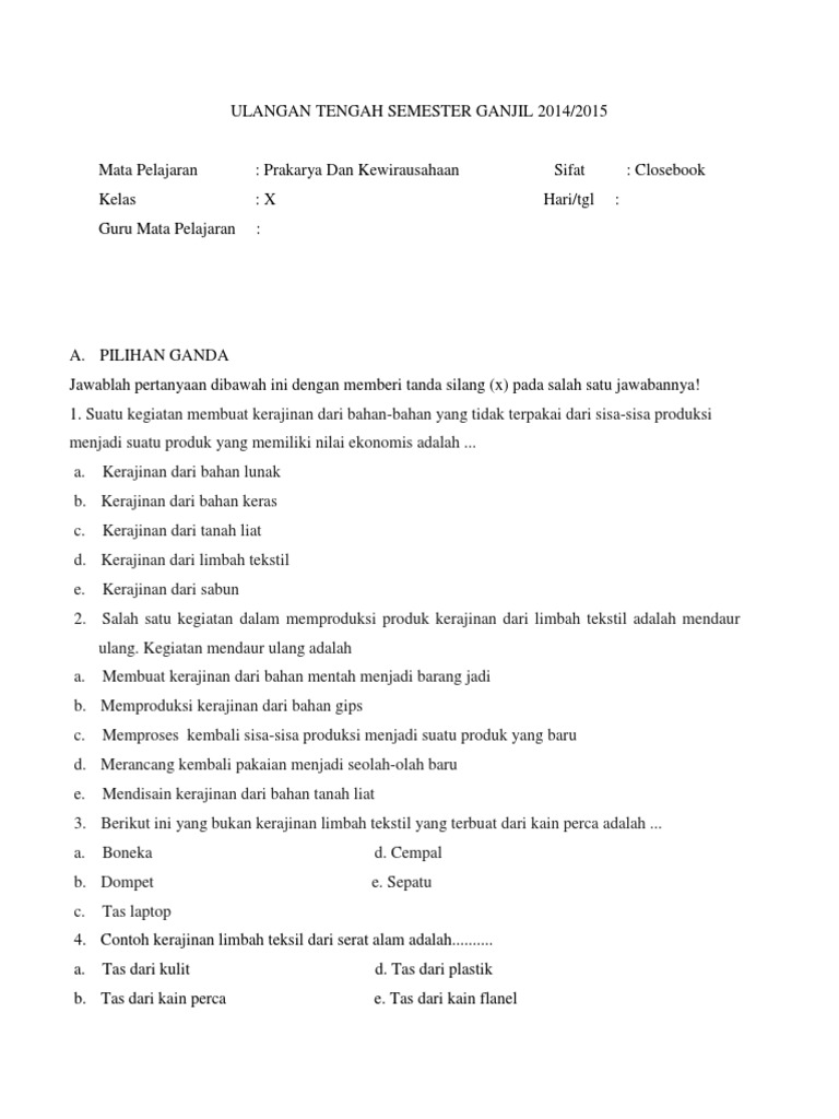 Contoh Soal Dan Jawaban Kewirausahaan Tentang Kerajinan Kumpulan Contoh Surat Dan Soal Terlengkap from i2.wp.com Maybe you would like to learn more about one of these? Check spelling or type a new query. Soal essay dan jawaban tentang kerajinan tekstil. We did not find results for: