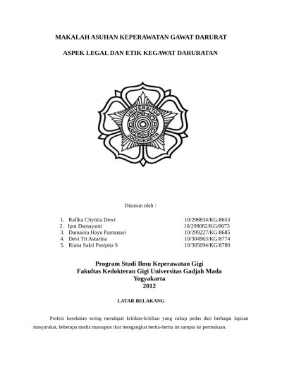 Keperawatan gawat darurat pada pasien ny.sr dengan. Pengaruh penerapan asuhan keperawatan keluarga terhadap tingkat. Kami pilihkan 100 contoh judul skripsi keperawatan secara khusus untuk. Tulis ilmiah ini dengan judul "asuhan keperawatan gawat darurat. Asuhan keperawatan gawat darurat pada an.