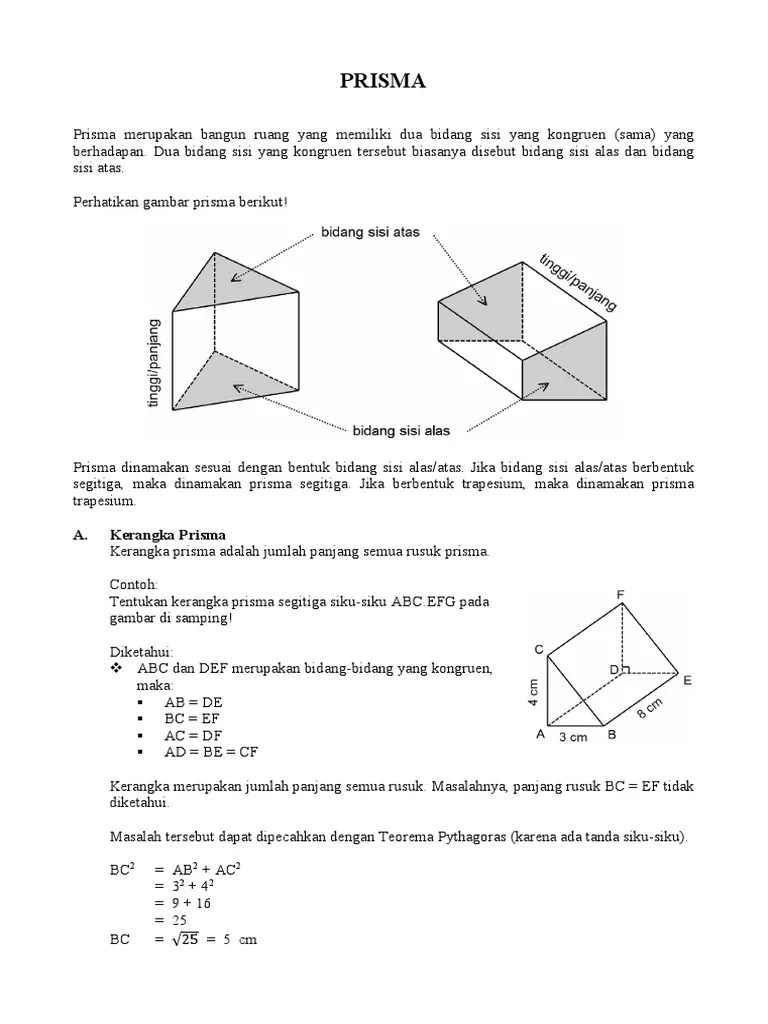 Pada pembahasan ini kami akan membahas tentang pengertian kubus secara lengkap, yang disarikan dari berbagai sumber yang dapat dipertanggungjawabkan. L = (2 x luas alas) + (luas seluruh bidang tegak) Volume = luas alas x tinggi (1/2 x alas segitiga x tinggi segitiga) x tinggi prisma luas: Diketahui v 125 cm 3. Yang membuat perhitungan kubus menjadi lebih mudah dibandingkan dengan balok adalah karena semua rusuknya memiliki panjang yang sama. Gambar bangun ruang dan rumusnya. Semoga soal soal yang lumayan untuk mengasah otak ini bermanfaat untuk kita semua. Jadi itu dia berbagai rumus prisma segitiga yang harus kamu ketahui, dan juga beberapa contoh soalnya. Cara mencari panjang kawat untuk membuat sebuah kubus. prisma sifat unsur jaring jaring prisma rumus prisma dan. Adik membuat prakarya berbentuk prisma segitiga yang kerangkanya terbuat dari bambu. V = panjang x lebar x tinggi. 2) dapat meningkatkan ketertarikan siswa pada pelajaran karena terdapat warna yang menarik dan ceria.